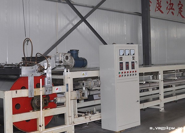 为了保持挤出的塑料不会出现因温度降低,流动性不足,妨碍挤出。特定地在机头外增加了一定功率的加热圈,保证了出料的正常饱满。并且在机头上设置的出料孔为平行15孔型,加大了出料量增加了生产速度。机头结构式平行挤出机头,螺纹同料筒相连接,当更换网板时可以省时省力。